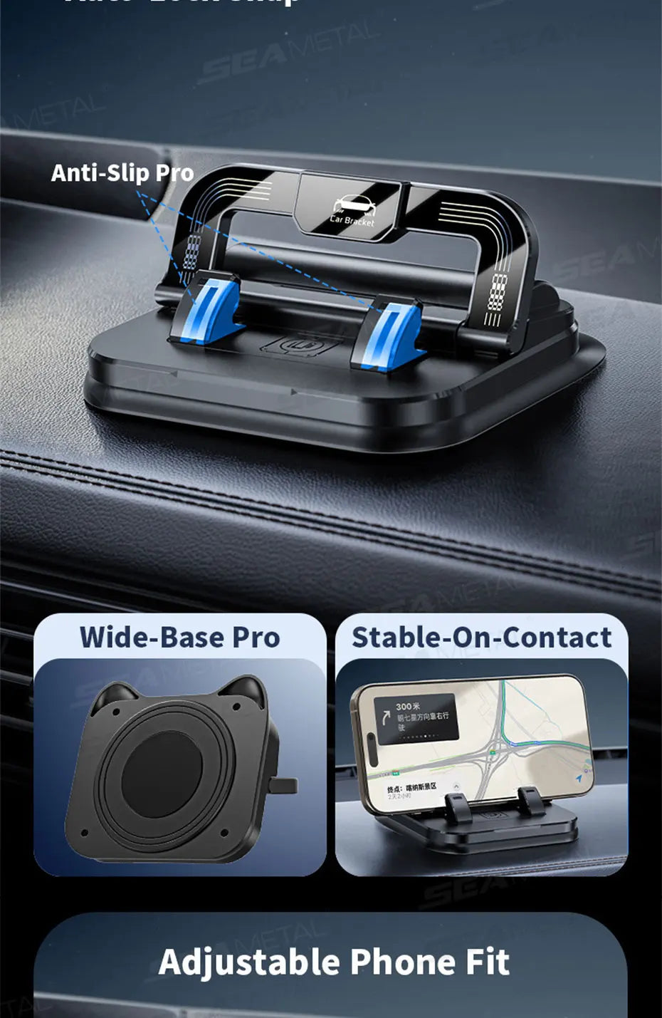 SEAMETAL Dashboard Car Phone Holder 360-Degree Rotation Head-Up Phone Mount Anti Slip Navigation Holder with Number Plate